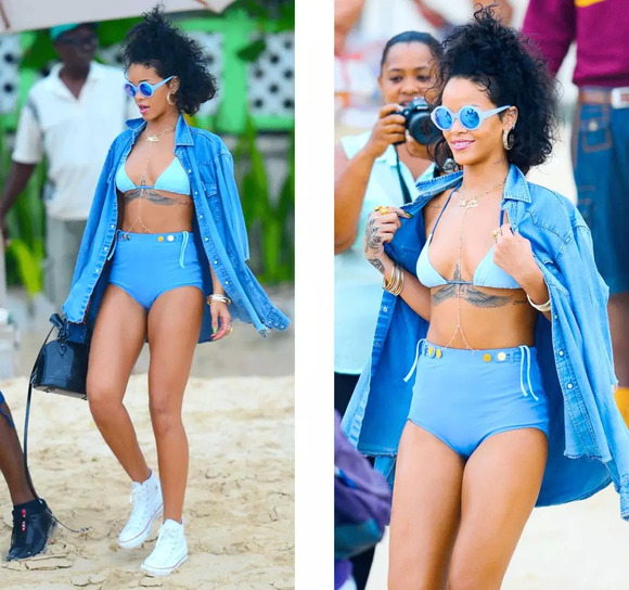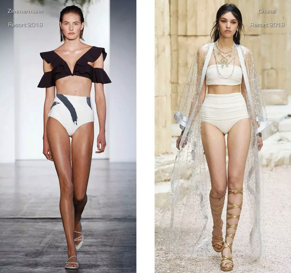分体高腰泳衣相比连体式好处显而易见,复古风的超高腰线可以拉长腿,只要没肚子就可以穿。