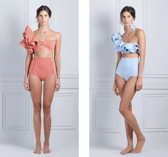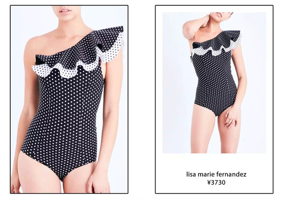 少女风泳衣里还有一款以波点和褶皱泳衣异军突起,其实跟flamenkini很类似,不过是荷叶边小一点、层层叠叠一点,更加公主风。