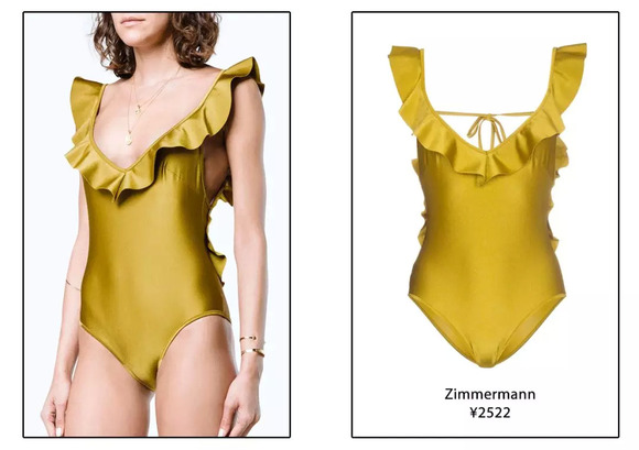 而且因为荷叶边堆积的体积感,就算是平板身材穿起来也没有普通比基尼一马平川的尴尬,