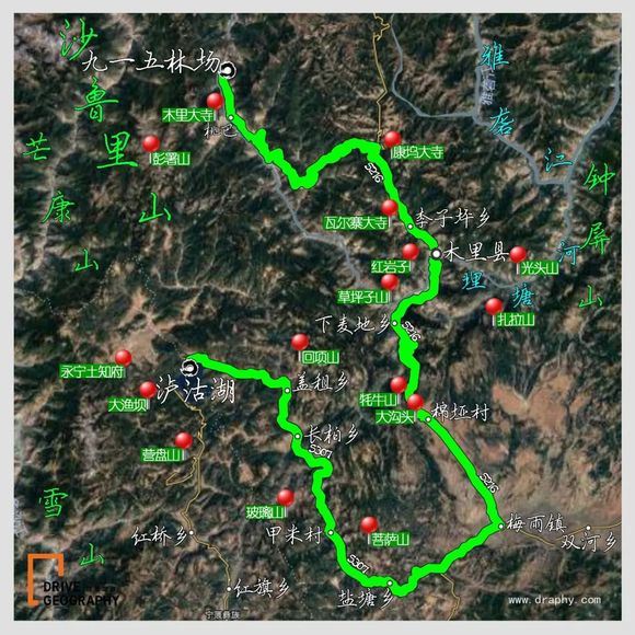 行程节点:丽江-泸沽湖-九一五林场-香格里拉乡-乡城县-香格里拉市-丽江