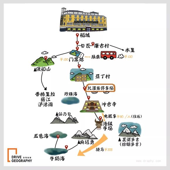 ▲亚丁景区示意图。制作@《自驾地理》
