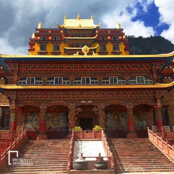 ▲木里大寺,位于理塘河下游,和上游的瓦尔寨大寺、东侧博凹河的康坞大寺,并称为木里三大寺。图片@《自驾地理》会员余德强
