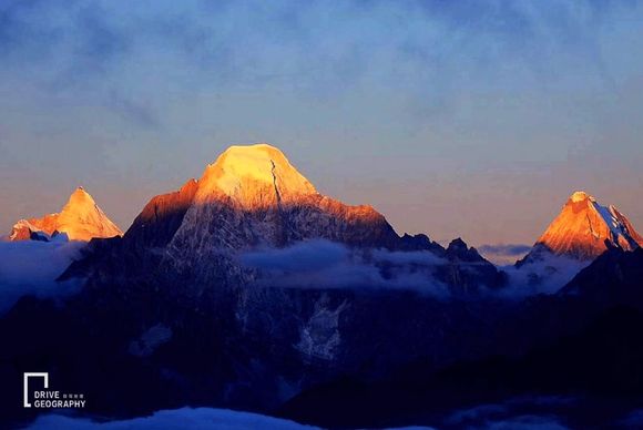 ▲但是晚他一个月去的好友--黑猫,却拍到了三怙主的日照金山,从左到右依次为:央迈勇、恰郎多吉、仙乃日;如果是6月份来的话,还能在观景台所在的高山上看到大片杜鹃花海。