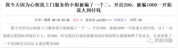 二是实施诈骗。键盘手约定好服务时间和地点后,会以各种理由让客户先付钱。比如交保证金、押金、的士费等,或者是安排小姐上门后,去几个人冒充小姐的老公、家人搞“仙人跳”勒索。这些搞诈骗的把这个行业搞得乱七八糟,我的“鸡头”生意也越来越差,最后才走上了“套路贷”这条路。