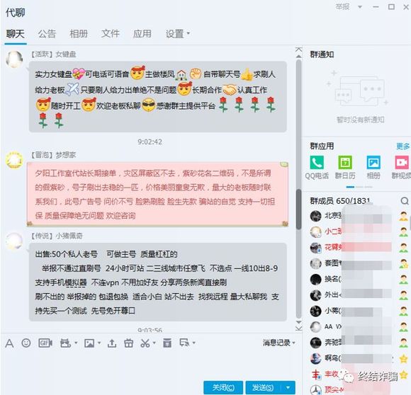 号商:专门从事各大社交软件帐号注册,并养号出售的商家。