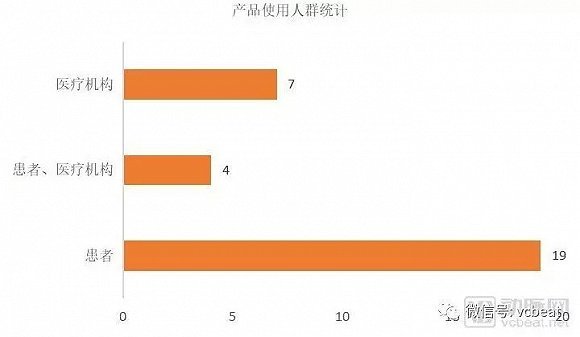 在30款产品中,面向患者的产品共有23款,占比76.7%,由于部分设备不仅仅只针对某一类目标市场,因此针对人群在统计中有交叉。商业模式既针对C端个人用户,也针对B端企业用户的产品,主要涉及糖尿病患者的胰岛素管理、心电、脑电的监测等设备,帮助个人的居家慢病管理或医疗机构对患者在出院后医院到家庭的过渡期间的指标监测。