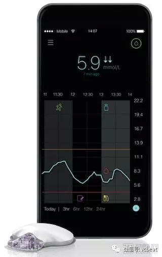 设备中含有对血糖浓度敏感的荧光多聚物,当血糖浓度发生变化,这种材料所传递的信号会发生变化,实时传输到患者佩戴的移动设备上。