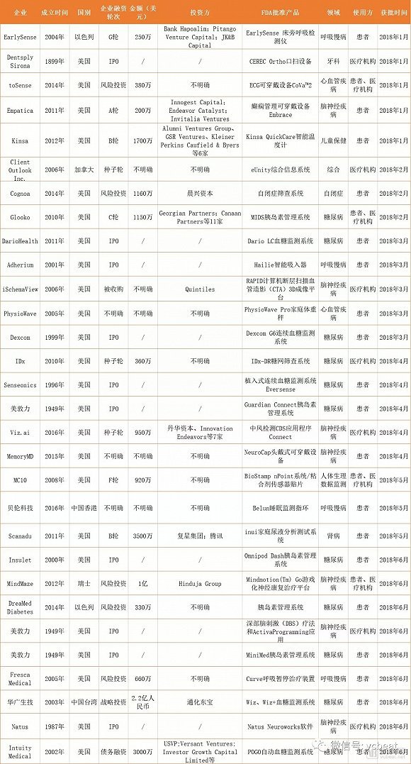 在2018年的第一季度和第二季度,通过对FDA(美国食品和药物监督管理局)数据库1月-6月获得510(k)上市前通知的设备的筛选,动脉网整理了30款数字医疗产品。