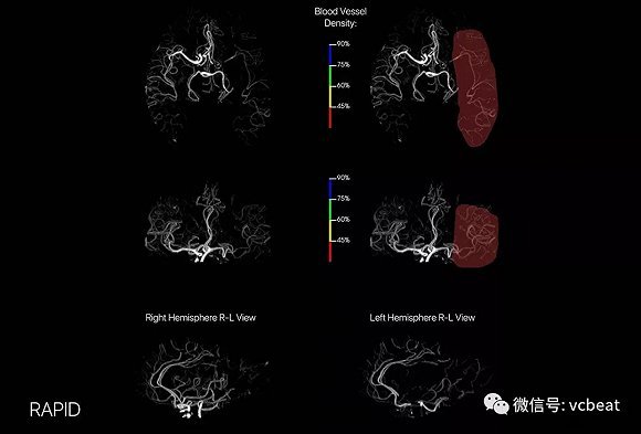 该技术能够让医生全面了解大脑中的血管,医生可以在平台上以不同的角度旋转图像。CT图还具有四个彩色覆盖层,以便医生和护理人员可以看到大脑的哪些区域血管密度降低。