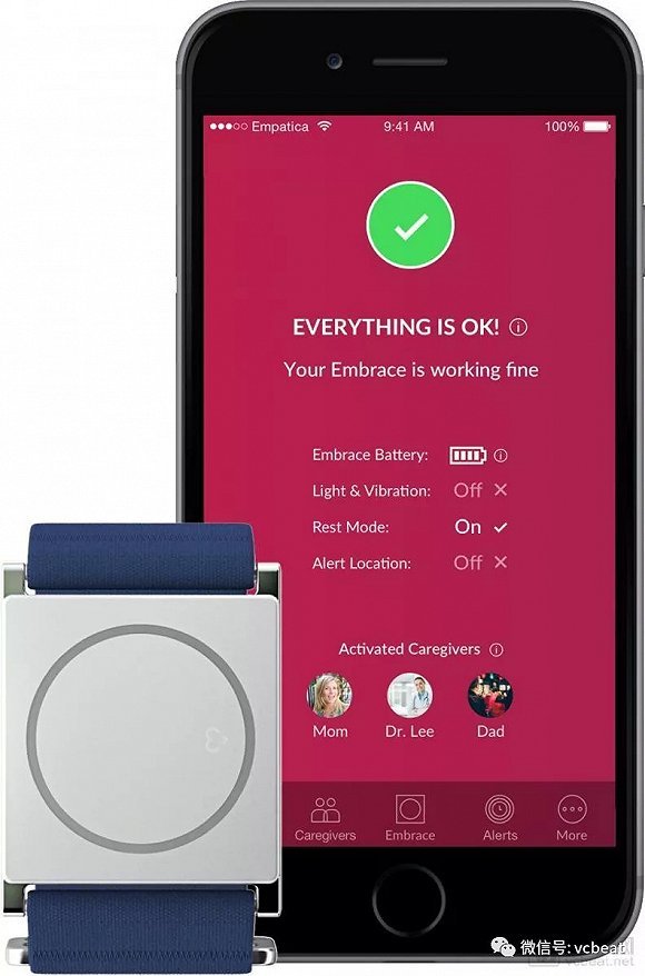 Empatica的Embrace是面向消费者的癫痫发作检测可穿戴物,在2018年1月份获得了FDA的510(k)许可。目前,该可穿戴设备已经被制药公司Sunovion用于临床试验,并且是作为处方而不是非处方设备,这意味着用户必须从他们的神经科医生那里获得处方以使用该设备的癫痫发作检测功能。