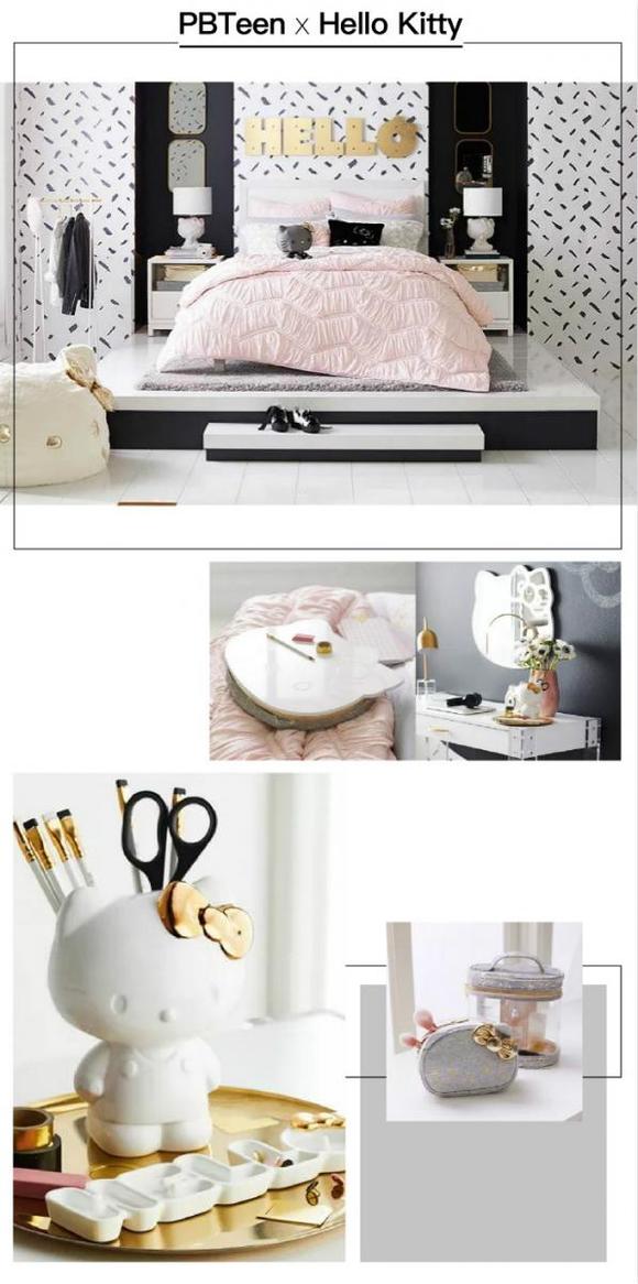 作为一家将目标市场投放在青少年身上的零售商,PBTeen一直在为年轻人提供书房、卧室的家居用品。此次与Kitty合作,除了巩固品牌年轻化受众的市场外,更想吸引年轻女性作为主要客户群。与此同时,联名后的Kitty变得更有质感了,让人一看便抑制不住想入手的冲动。