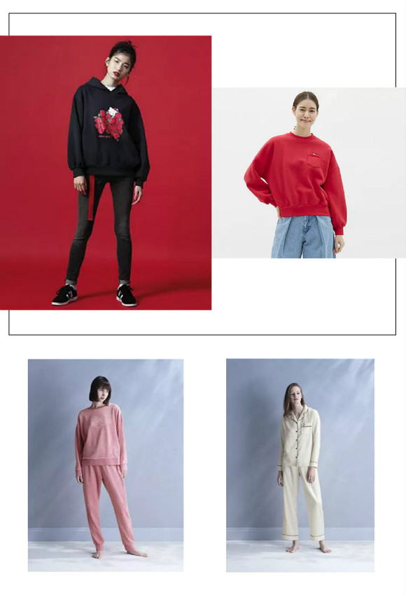 其实,与Kitty联名合作的品牌不在少数。拿PBTeen这类的家居品牌来说,除了推出联名系列的床上用品外,优衣库旗下的平价品牌GU也曾和Kitty联名,推出了系列家居服、睡衣和卫衣。经典的Kitty形象搭配不一样的颜色,给人以舒适慵懒之感;此外,合作的卫衣用红黑冲击人们的视觉,配以清新的水果元素,简单中透着一股时尚。