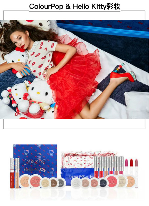 在Kitty42岁之际,美国南加利福尼亚的本土化妆品牌ColourPop与之合作推出了化妆品系列。这款化妆品牌同样主打年轻人系列,且价格更实惠,推出了包括唇彩、唇膏、唇釉、单色眼影、高光和腮红在内的23件化妆品。不妨试着入手一套Kitty版的化妆品,化一幅美美的“Kitty妆”。