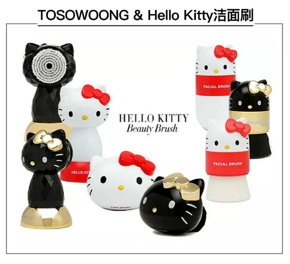 有了Kitty的化妆品,卸妆也是一件同等重要的事。韩国品牌TOSOWOONG土小熊同Kitty联名合作,推出了一款黑白两色的美容洁面刷和一款身体沐浴刷。4D震动刷头和0.005mm的抗菌纤维刷毛,不进可以深层清洁毛孔内的杂质,还让你的皮肤来了一场massage。