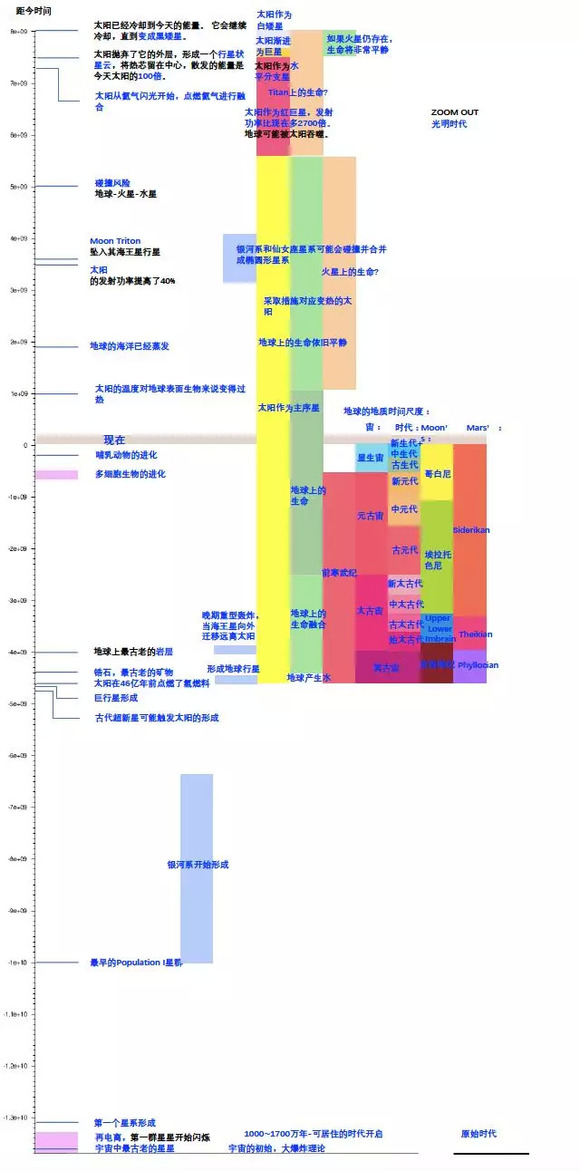 距今100万年:这是预估人类可以殖民银河系、并利用星系的所有能量的最短时间,假设速度是光速的10%。