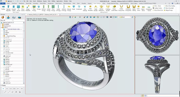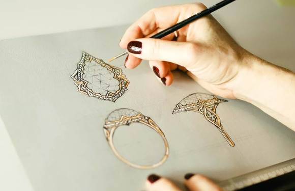 行业里仍然用传统的手绘和制图方法,而更多的珠宝设计软件被开发和普及起来,设计师有了帮手。早年珠宝设计师会先为设计稿做一个蜡模,今天可以用CAD模型、数控机床切割,或者3D打印蜡模来实现。
