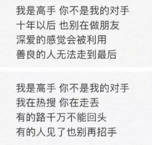 但再看胡彦斌微博的第二张配图,是他自己作的一首词,名叫《高手》。