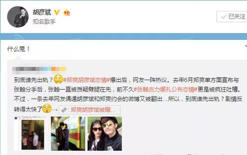 媒体们揣测郑爽其实是出轨胡彦斌才和张翰分手,而在此新闻曝出之后,胡彦斌还亲自转发怼了回去。