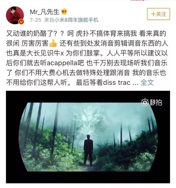 这一次事件的导火索,自于一个发布于步行街板块的“吴亦凡无修音视频,你能坚持到几秒”的帖子,在这个声称为干音的视频中,吴亦凡说唱的声音走调,有气无力,最后的呈现效果自然是惨不忍睹。该帖子迅速引来了虎扑er的群嘲,短短一小时就成为了虎扑的热门帖子。