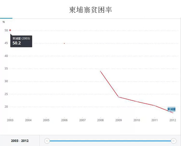 自2004年柬埔寨政府推出《四角战略》发展规划以来,柬埔寨经济一直保持大幅增长的趋势。过去十年,除了2009年受到全球经济危机影响之外,其余年份的GDP增速都保持在7%左右。世界银行的数据显示,柬埔寨2012年的贫困率已经从2008年的34%下降到了17%。崭新的气象正在逐步掩埋这个国家曾经战乱留下的伤疤。