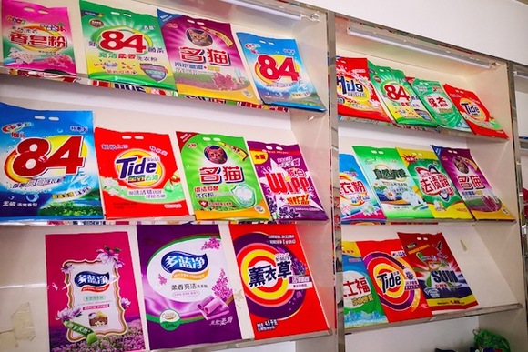 颇为讽刺的是,目之所及的沿街店铺中,摆放的产品除了他们自家完全不知名的品牌之外,剩余产品均为市场上的一流洗涤用品品牌,且均为正品。对于造访的陌生人,带着警惕心的店主直接表示,不卖假货。但他们急于低头摆弄手中的手机,在那里他们为生意寻求客户来源。“连工人们都有自己的网店,在干活之余,没事回复一下前来咨询的顾客,也能卖出去几件。”