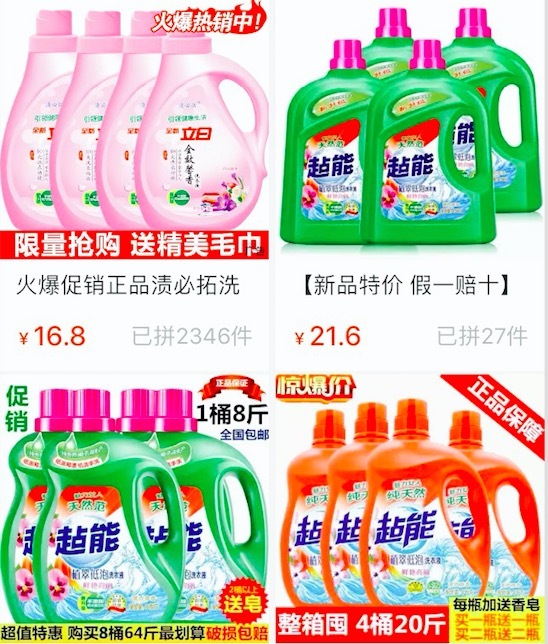 面对前来“获取(制假)经验”的陌生人,其中一位原料供应商称,“我们村基本没人做这个(假货)了,最近我们做得多的是拼多多,量很大,一天好几万瓶(洗衣液),不过拼多多在往正规方向走,全国各地都在打假,别想着那个(卖假货)了。”