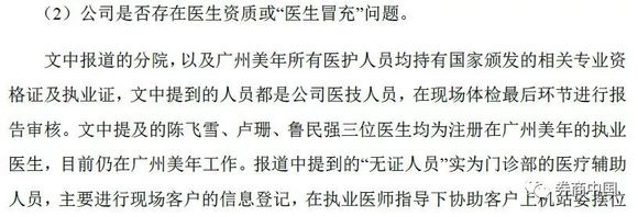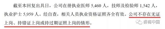 美年健康回复深交所称,公司不存在无证上岗、持错证上岗或持过期证照上岗的情形。紧随其后,澎湃新闻报道称,广州市天河区卫计局表示,在对举报涉及的三位医生陈某、卢某、鲁某进行询问和现场调取体检报告后,医生陈某表示部分患者报告非其本人审核,美年富海门诊部涉嫌违规出具报告。