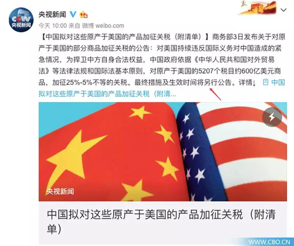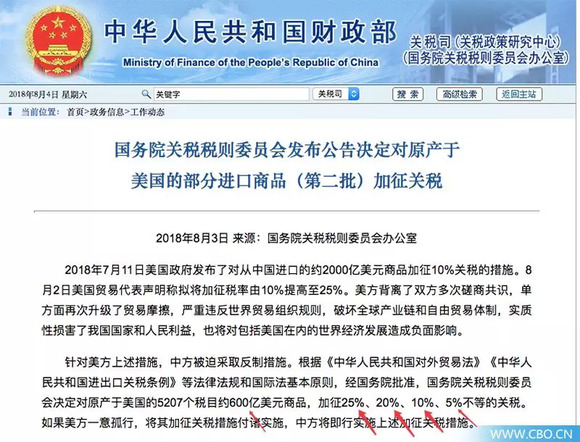 在目前的中美贸易战形势中,我们需要看到的是,除了本次中国政府作出的600亿美元商品加收关税的“回击”,此前美国政府已于7月5日开始实行的,对价值340亿美元的中国商品加征25%的额外关税。