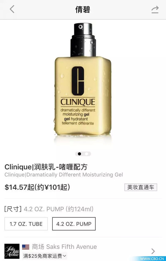 (记者随机在跨境购平台搜索的倩碧黄油美国价格)