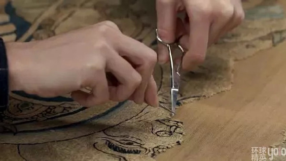 由于织物质地使这幅画相当脆弱,百年来这件刺绣画很少展出。1908-1912年间,它曾被一位来自英国皇家刺绣学院的小姐E.A.Winter修复过。她花了两个多月时间去小心缝合一些毁损严重的部位。