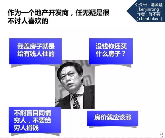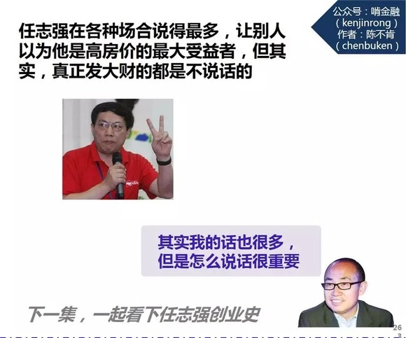任志强性格中最大的闪光点是侠义。尽管他是高房价的积极鼓吹者,但实际上,身为央企负责人,他并不是房地产繁荣的最大受益者。