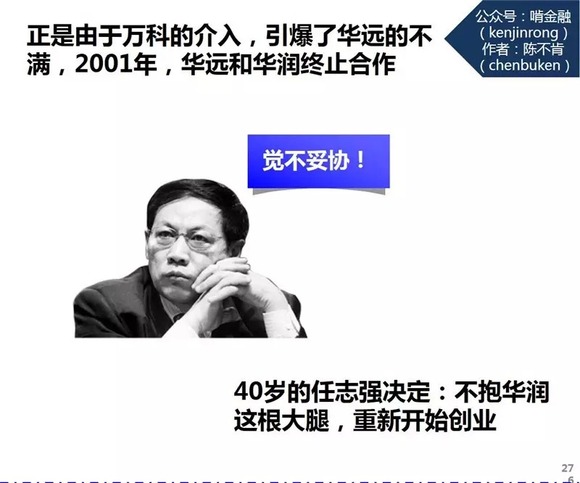 任志强因为与华润集团的合作迎来了职业生涯的巅峰,但最终却因为王石万科集团的介入,导致任志强与华润合作关系的破裂。