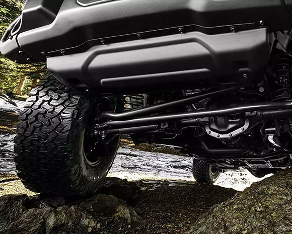 在差速锁设计和驱动模式之外,两者的更深层次差异其实在整款车的性能构思上。比如,两款车采用的都是有利于越野的非承载式车身以及整体桥式非独立悬挂。不过,由于奔驰G采用的是前后整体桥结构,它在一些极限操控时会表现出比牧马人更稳定的底盘表现,只是奔驰G一直保留着高重心的特性,它的转向侧倾程度会比牧马人更明显。