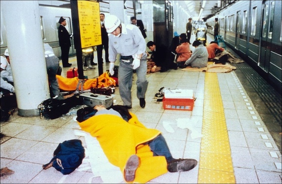 麻原还将种种“阴谋论”运用得炉火纯青,把历史进程扭曲简化为“我们”和“他们”两大阵营的对峙与交锋。他主张,如今日本泡沫经济破灭、日美发生贸易摩擦、苏联解体,局势动荡不安,人心惶惶不安,都是因为“他们”在幕后捣鬼,而“他们”的终极目标是在2000年到来之前发动第三次世界大战,虐杀30亿人口。为了使信徒对这套说辞坚信不疑,麻原声称自己穿梭至第三次世界大战之后的未来世界,亲眼目睹了核战争过后满目疮痍的景象(只有日本人凭借真理教的护佑存活下来)。晦暗前景当前,“我们”当然不能坐以待毙,也不忍坐视地球灭亡,唯有发动“最终战争”奋起反抗,拯救世人于水火,同时以大慈悲为“他们”消除“业报”(karma)。当然,“最终战争”可能损伤人命,但这是建设理想世界所必须付出的微不足道的代价(“慈悲杀人”),更何况为奥姆献身之人定能免于轮回之苦。麻原日后果然发动了“最终战争”(地铁沙林事件),但其目的是颠覆国家,夺取政权,无人得到救赎,世界也没有变得更好。地铁沙林事件最终造成13人死亡,6300多人受伤,不少人留下严重后遗症,生活再也没能恢复原样。