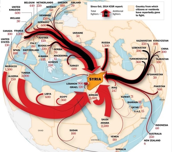 《华盛顿邮报》援引的数据显示,目前全世界各地已有20000人加入了ISIS组织,2014年10月份的数字为15000人,其中五分之一来自欧洲西部各国。