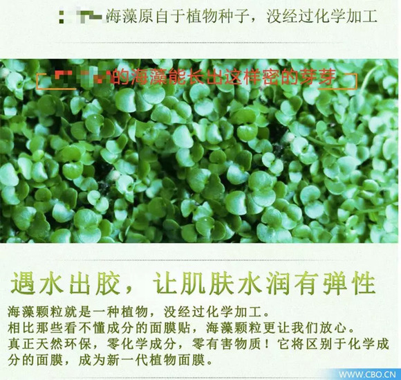 自此之后,海藻面膜商家的话术就变为:“我家海藻经过辐射杀菌,海藻种子的胚还是完整的,如果温度适宜就会长出新芽,能发芽的海藻面膜才是好面膜哦~”