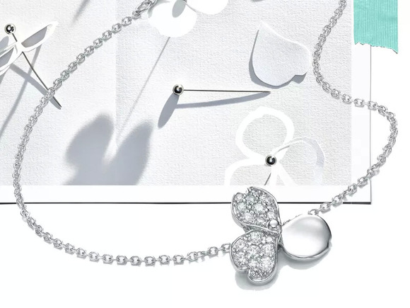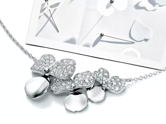 上图:全新 Tiffany Paper Flowers 花韵系列铂金镶钻项链