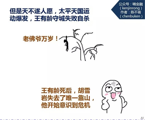 王有龄在太平天国运动中守城失败之后自杀,胡雪岩迅速找到了更大的靠山左宗棠,借助他的支持登上了事业的巅峰。