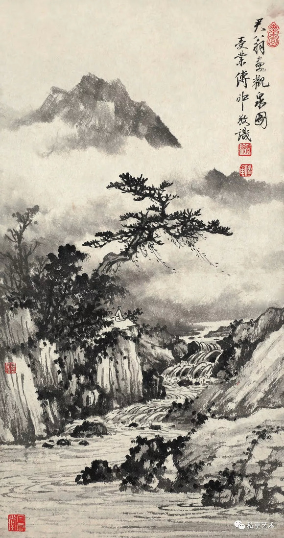 黄君璧 观泉图 纸本水墨 57×30cm 20世纪60年代
