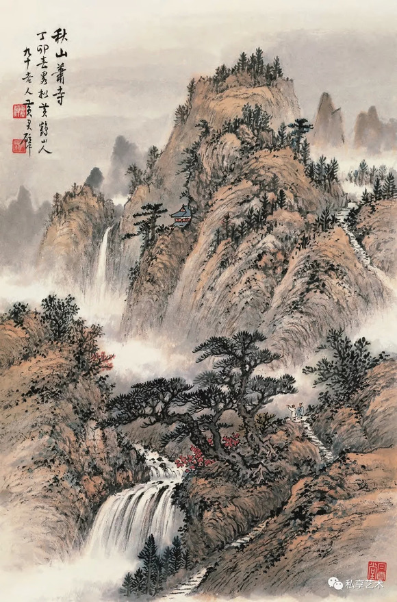 黄君璧 秋山萧寺 纸本设色 61cm×40cm 1987 年