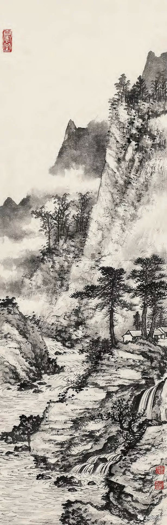 黄君璧 远山傍溪瀑 纸本水墨 89cm×30cm 20 世纪 60 年代