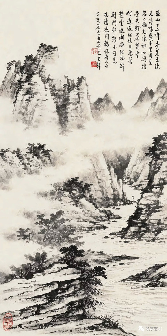 黄君璧 俯看云海图 纸本水墨 57cm×30.5cm 20 世纪 50 年代