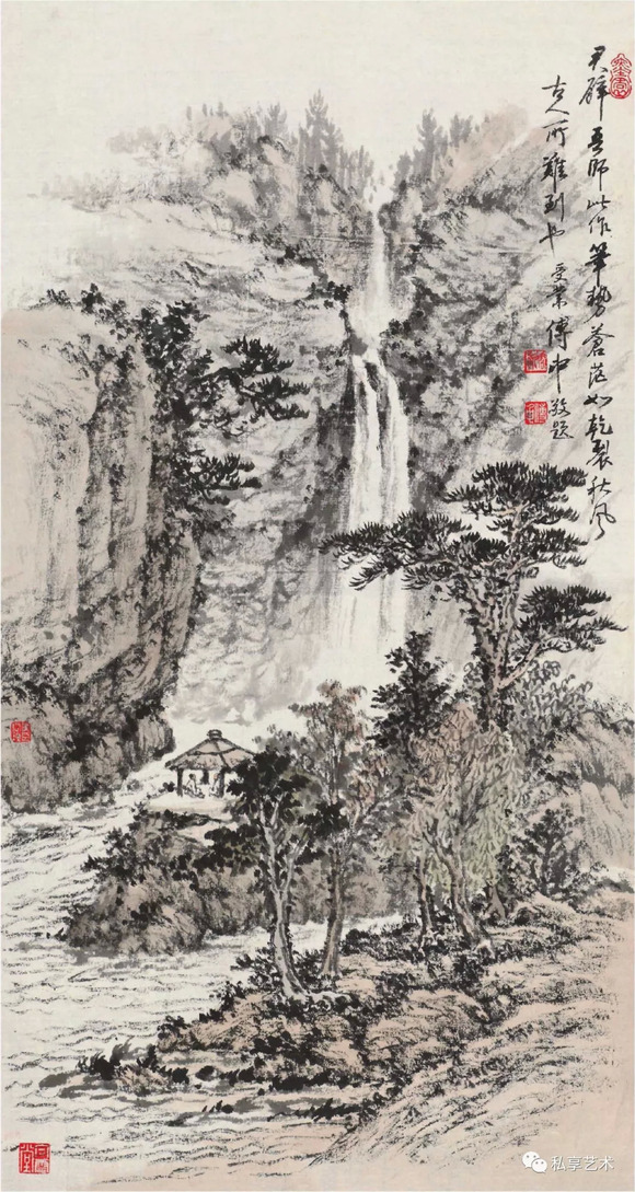 平生作画,偏爱山水,草木幽林,嫌其寂静,行云流瀑,始觉奔驰,耽其景而状其形,主其动而实其静。