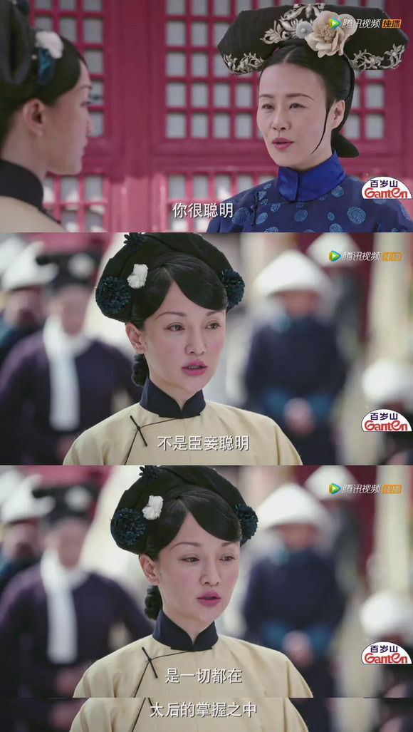 而在《如懿》里,如懿道破甄嬛借她之言堵住朝臣非议的想法,甄嬛道:“你很聪明”。很明显,这是有些底子被揭穿的恼怒。如懿如何回答呢?她说:“不是臣妾聪明,而是一切都在太后的掌握之中。”反倒令甄嬛不好继续发难。