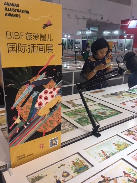 在东二馆,今年的图博会首次设立了北京国际童书展,展览面积达2万平方米。这里不仅涉及童书领域版权贸易和教育,而且还增设了动漫、影视、IP形象授权的展区。如果你是父母,想要看看什么平台或者工具适合孩子学习,那么在东二馆你可以比较腾讯育儿、当当童书、有道乐读等互联网公司进驻的少儿读书项目,也可以看看咔哒故事、咿啦看书这些阅读平台怎样颠覆传统的阅读体验。如果你带着孩子,不妨带来一起逛逛菠萝圈儿国际插画展,来自海内外百余位插画师带来了风格各不相同的插画值得仔细观看。