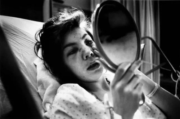 Diane正在医院的病床上检查她的脸。她看到她的伤势,第一次平静地说: