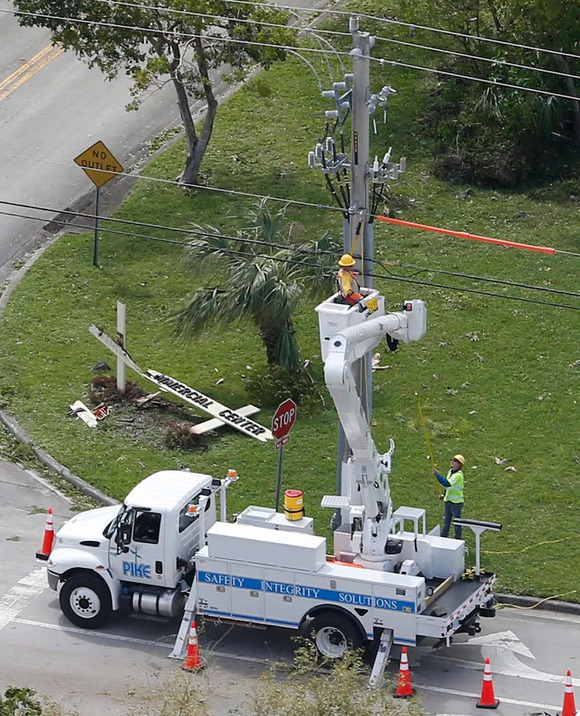 迈阿密电线修理工正在修复受到台风损坏的电缆(照片:美联社)