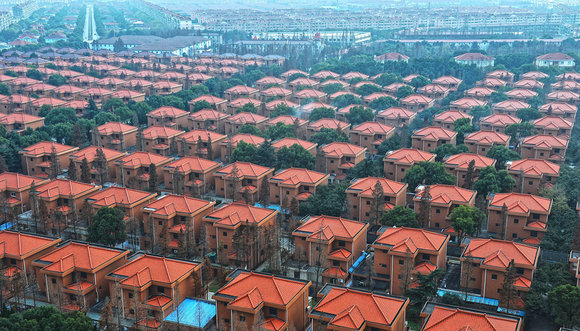 2016年10月18日,江苏省无锡市,从华西村村口对面高楼俯瞰华西村。图片来源:视觉中国
