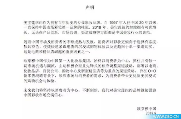 在这份声明中,欧莱雅方面表示,为了顺应当下市场消费者需求,品牌决定部署以电商、化妆品店、百货公司、购物中心及新型精品店等为重点的发展渠道,为消费者带去更优质、沉浸式的购物机会与体验。