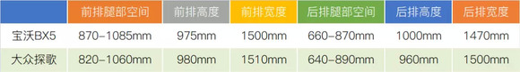 那么在其它方面,大众探歌和宝沃BX5又各自有怎样的表现?我们根据实际测量结果依次作出分析。